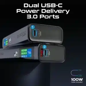 إذا تريد باور بانك “قوي” للاستخدام اليومي والسفر ويقدر يشحن أكثر من جهاز بسرعة، فهذا الخيار يركز على منافذ USB-C PD عالية القدرة مع شاشة معلومات مفيدة وهيكل معدني متين.