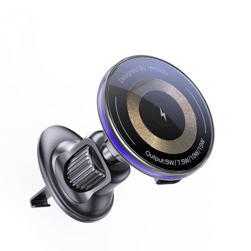 حامل YESIDO المغناطيسي مع شحن لاسلكي سريع حتى 15W مصمم للتركيب على فتحات التهوية (Air Vent) مع تثبيت مغناطيسي قوي ومتوافق مع MagSafe، بالإضافة إلى إضاءة “Flowing Light” لتسهيل الاستخدام ليلًا. يوفر تثبيتًا سريعًا بوضع الهاتف ورفعه بيد واحدة، مع ذراع/مشبك متعدد الطي لضبط الوضعية والثبات أثناء القيادة.