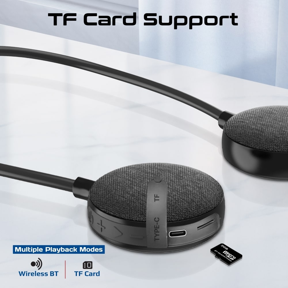 If you want a wearable speaker that keeps your ears open, delivers stereo sound, supports TF card music, and handles calls with a built-in mic—plus IPX4 splash resistance—this neckband speaker is a solid everyday choice.